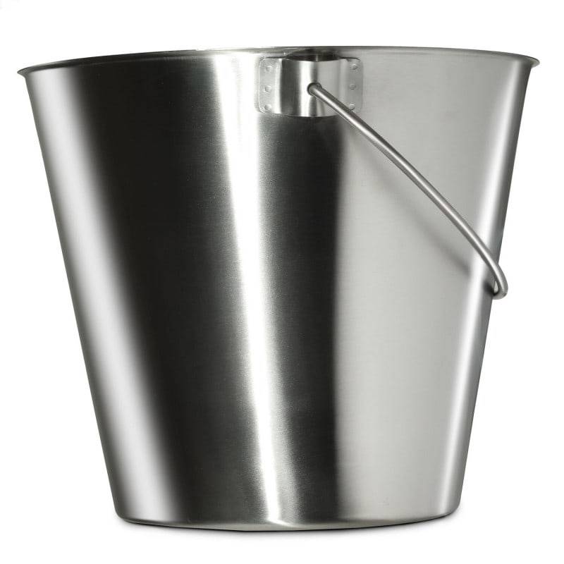 Denna hink är gjord av rostfritt, rostfritt stål och har en borstad, lätt polerad finish. Den rostfria hinken har en förstärkt botten samt en förstärkt hällkant, vilket gör den extra robust.